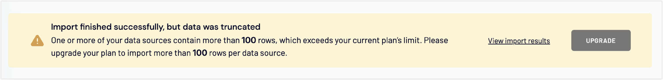 If you try to fetch more rows than your current Data Volume limit allows, you will see a corresponding warning message: