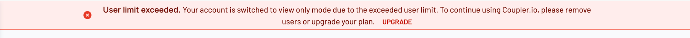 If you downgrade to a plan with fewer user seats than your previous plan, and your current number of users exceeds the new limit, you'll see this error on your dashboard: