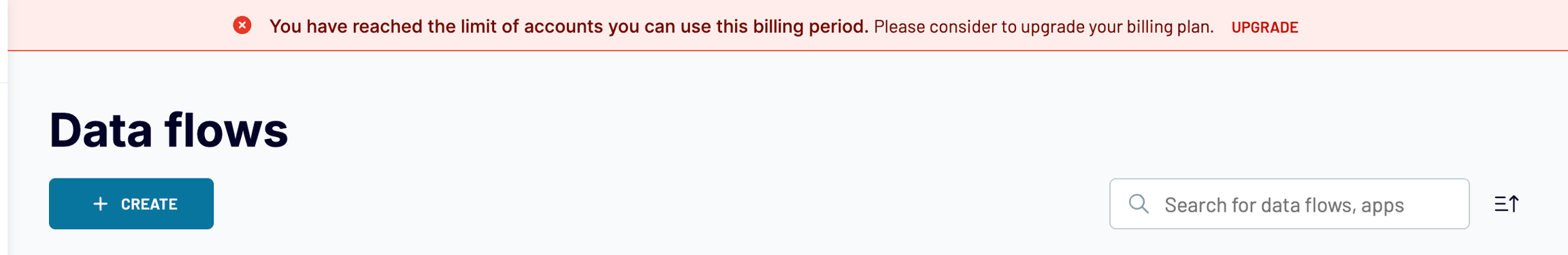Once you exceed the account limit and run a data flow, your data flows will fail with the following error: