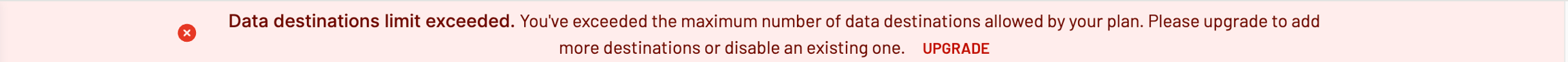 Once you reach the maximum number of data destinations on your current billing plan, you will see the following warning on the dashboard: