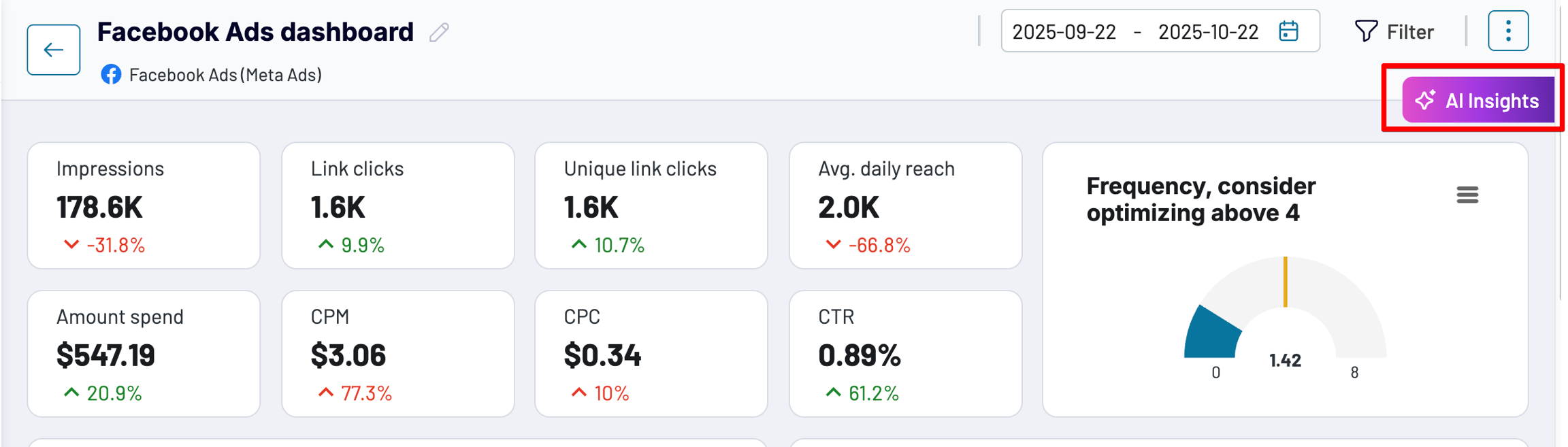 When you use a template that exports data to the native Coupler.io Dashboard, you can generate an AI insight: