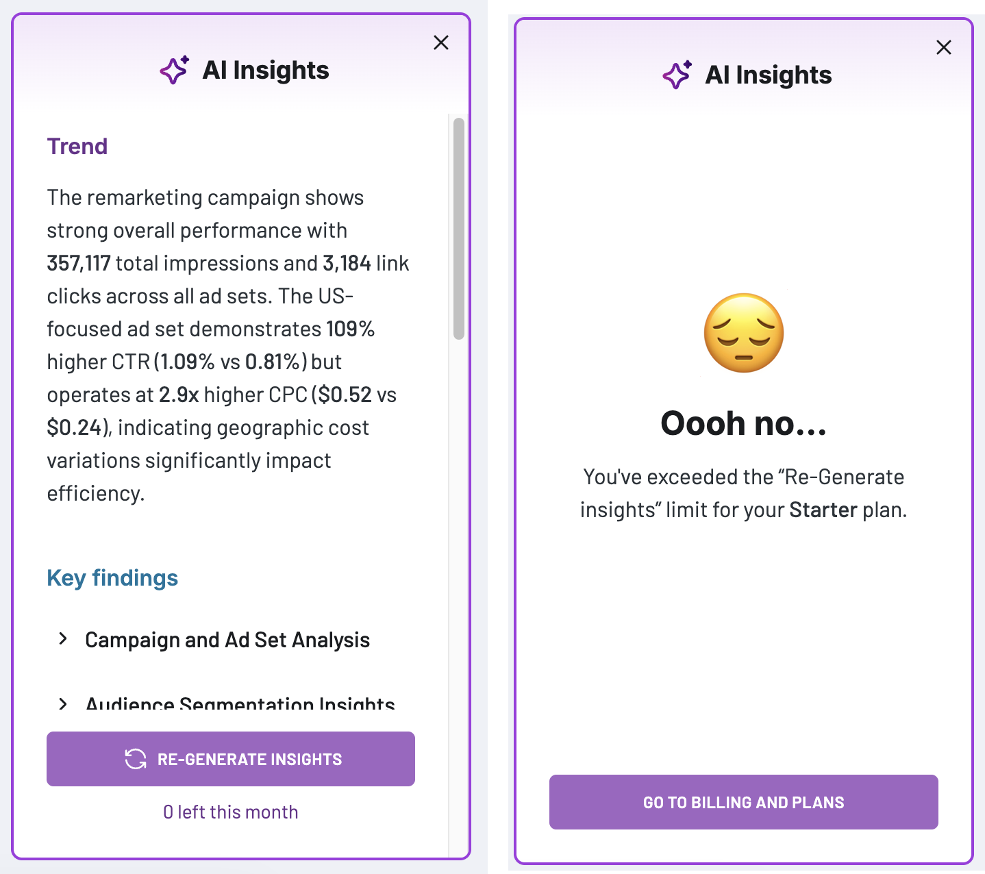The number of AI insights you can generate per billing cycle depends on your plan.
