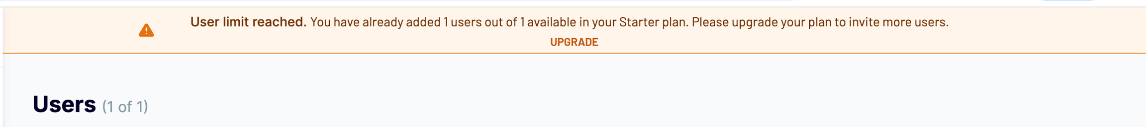 Once you add the maximum number of users to your account on your current billing plan, you will see the following warning on the Users page: