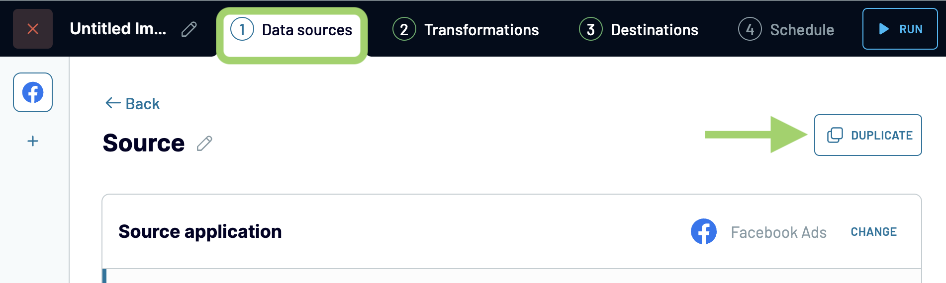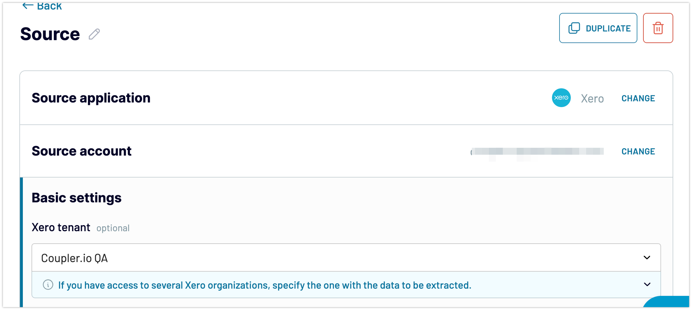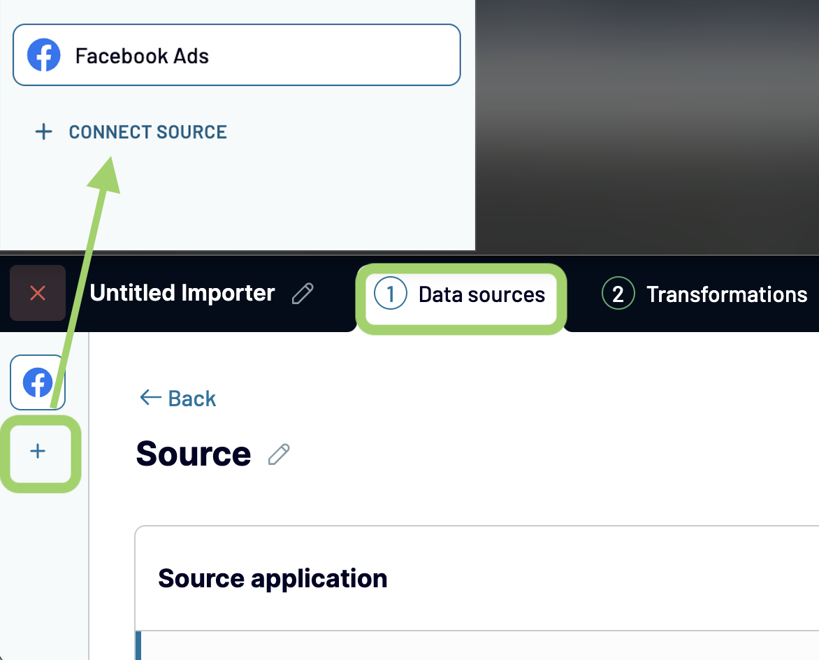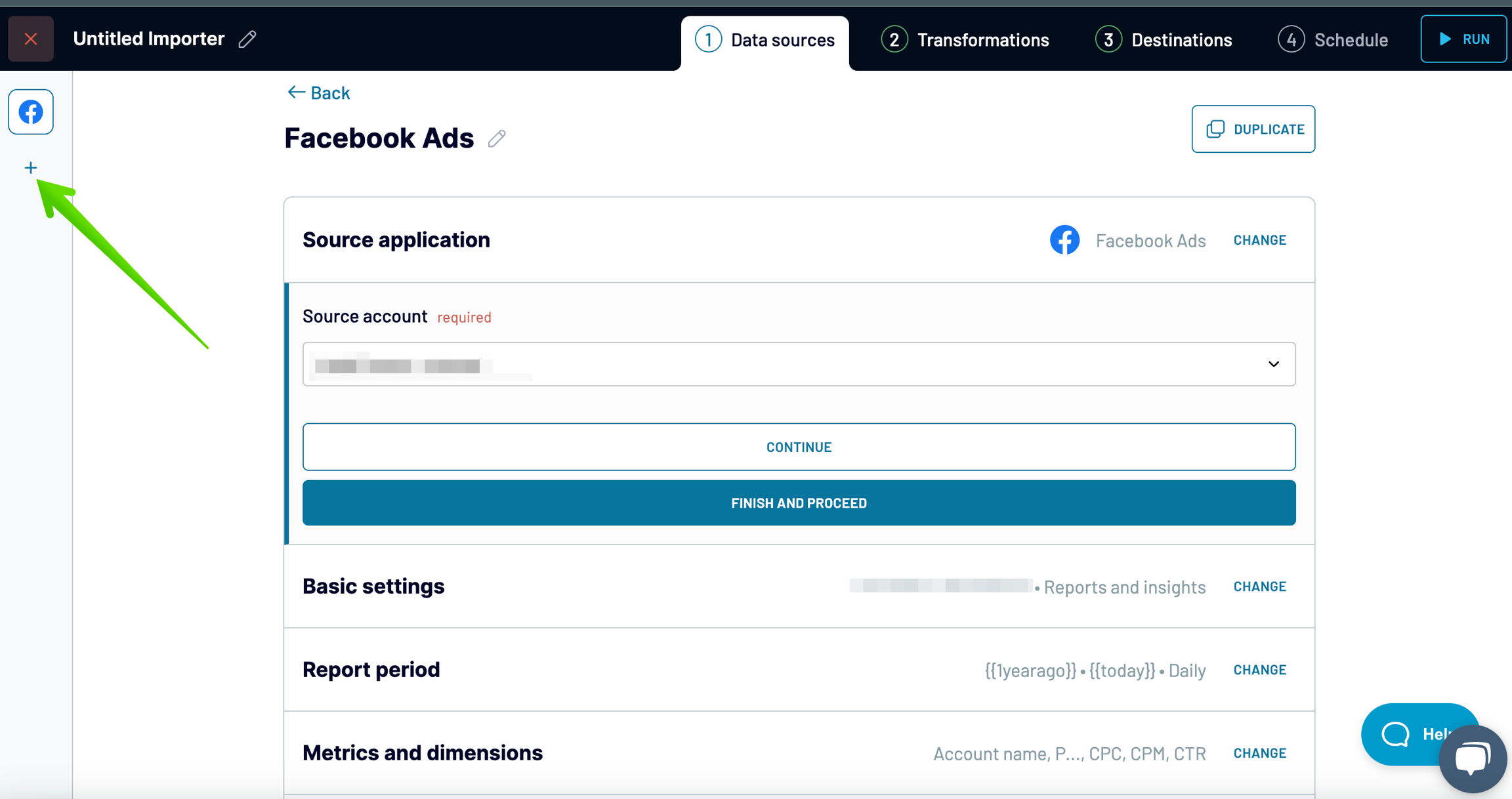 1. When setting up an importer in Coupler.io, the first step is to set up your Data source to extract data. After setting up your first source, you will have the option to add a new source or duplicate the existing one.