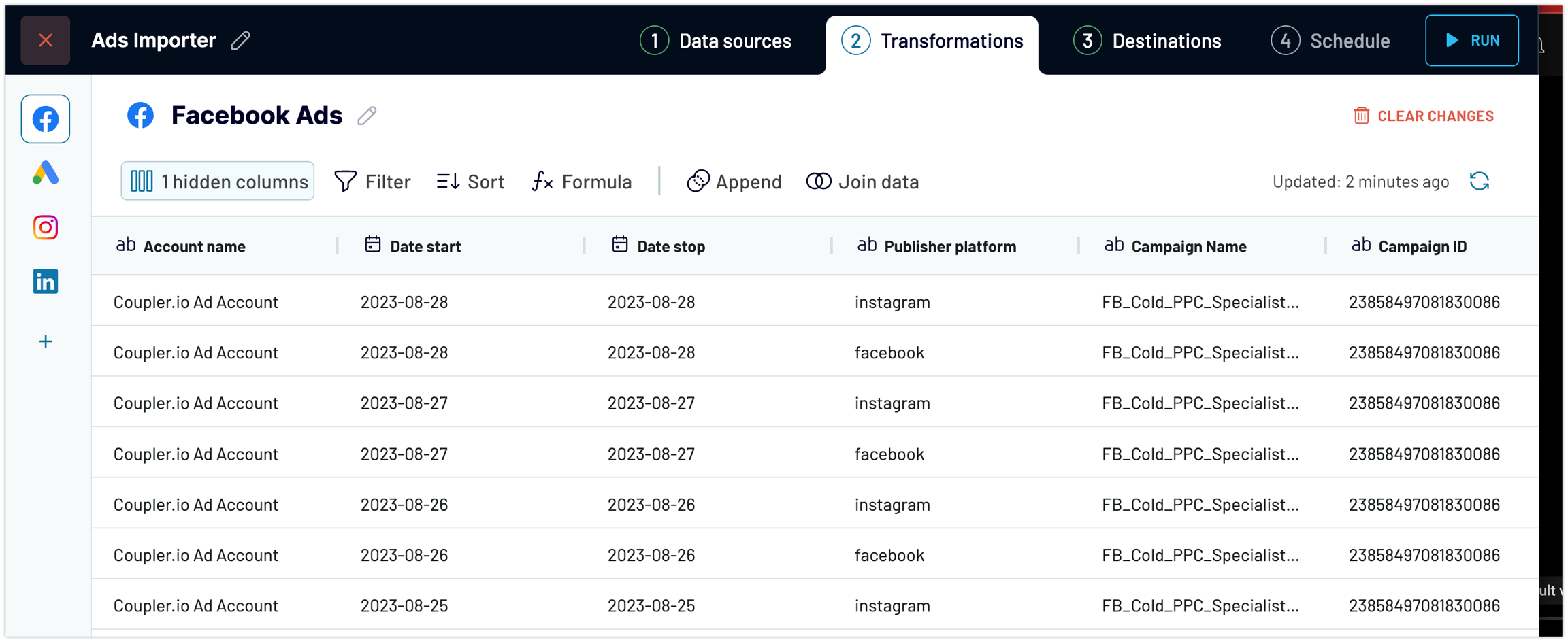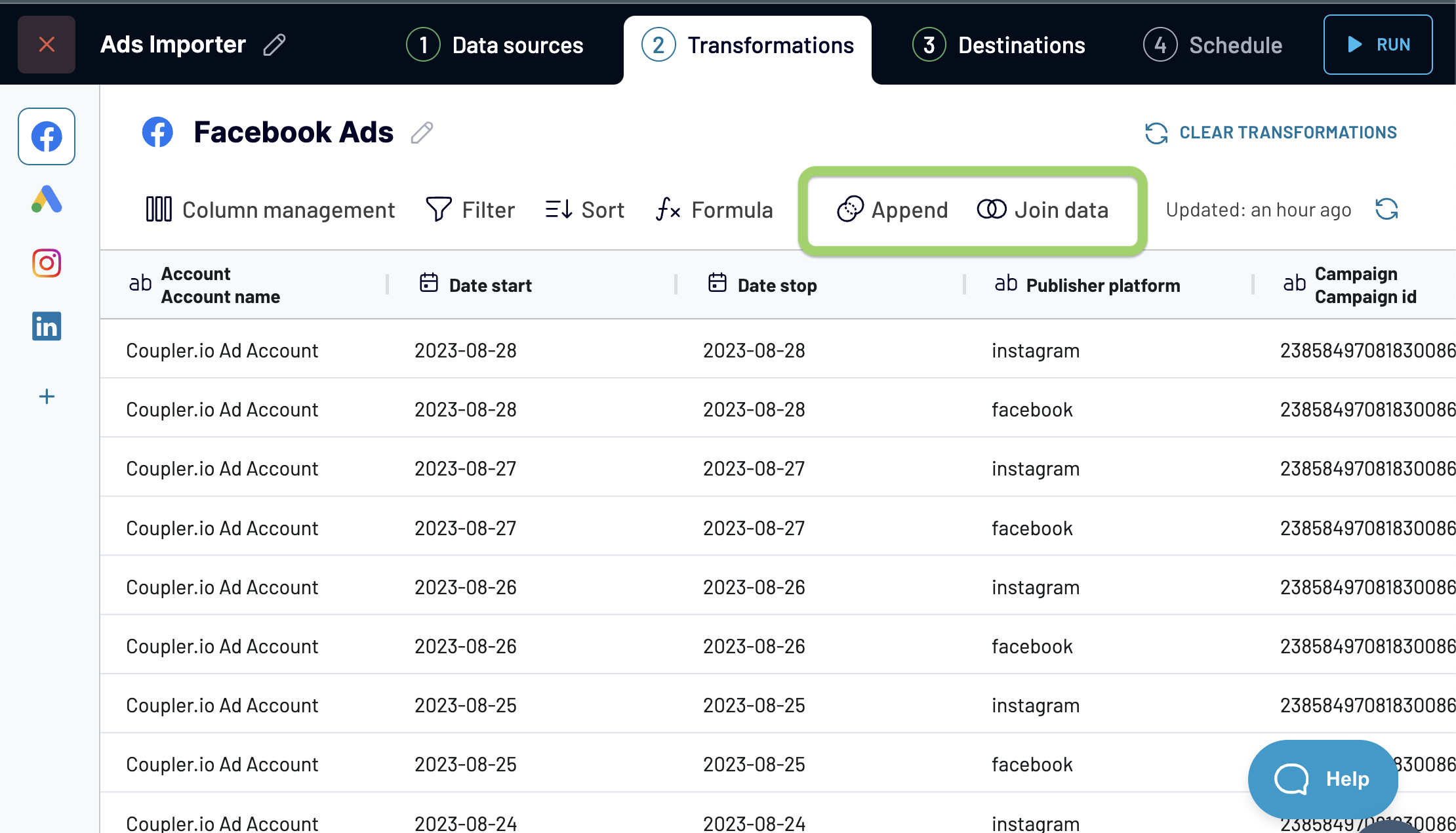 Combining data from two or more sources is available in two modes in Coupler.io: JOIN and APPEND.
