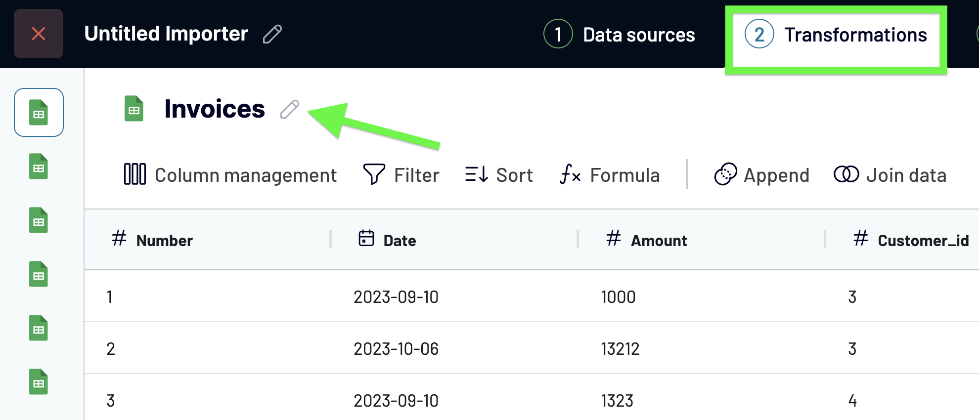3. Add as many transformations as needed to your importer: