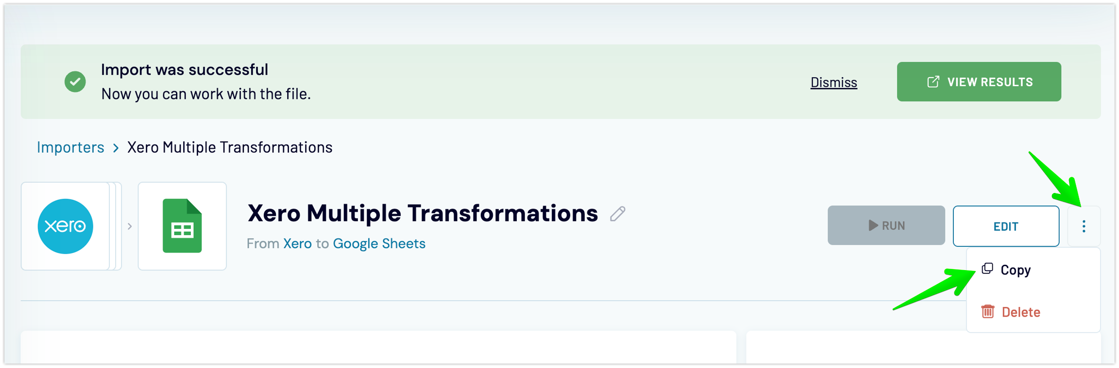 8. We are all set with combining Invoices, Credit Notes and adding Account name to them for our 1st tenant 🎉 Proceed to the Destinations step, set up your needed destination, save and run the importer.
