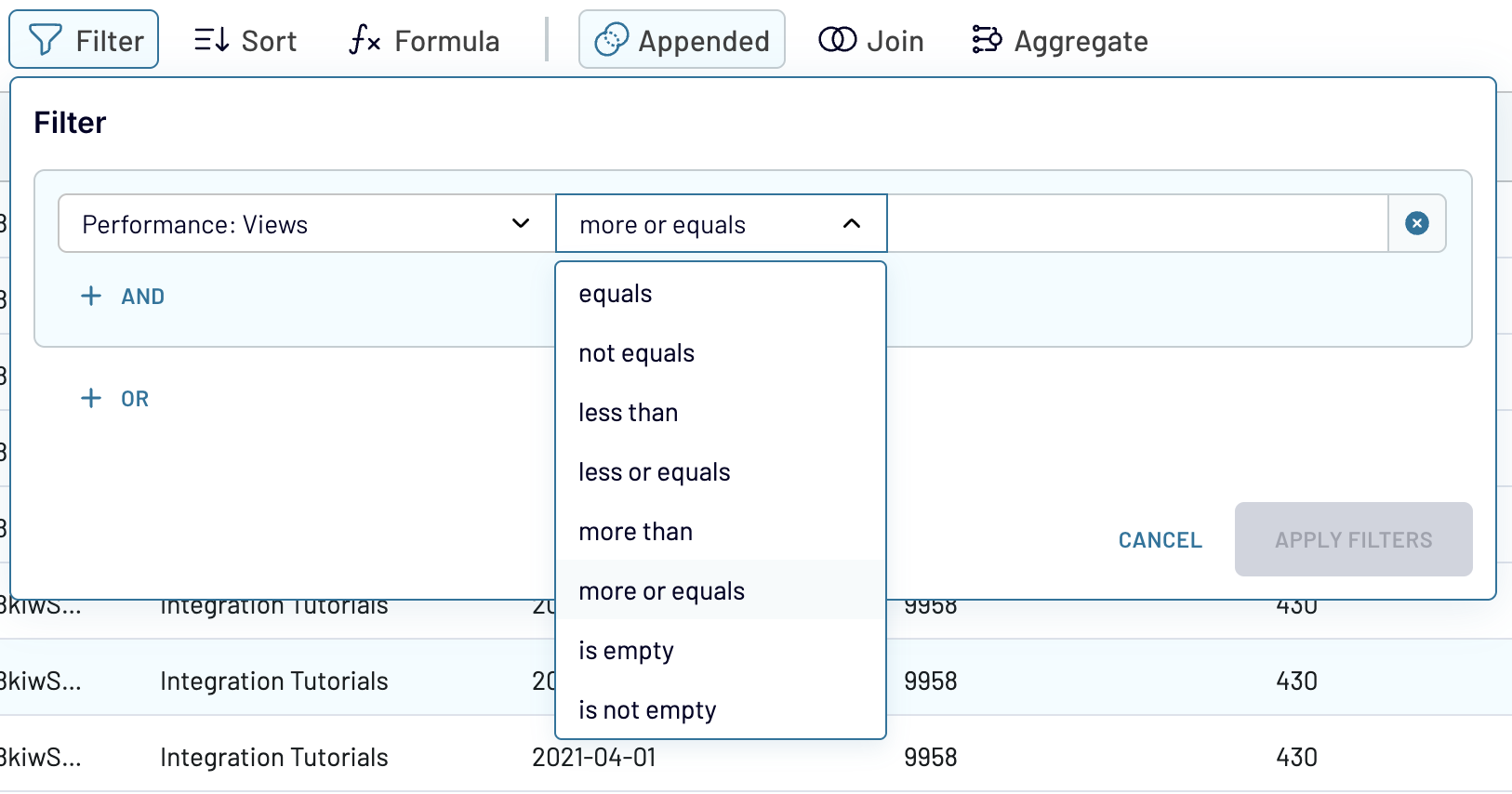 5. Press the Apply Filters button or add more filters by pressing the "AND" or "OR" buttons, depending on the logic you want to specify.