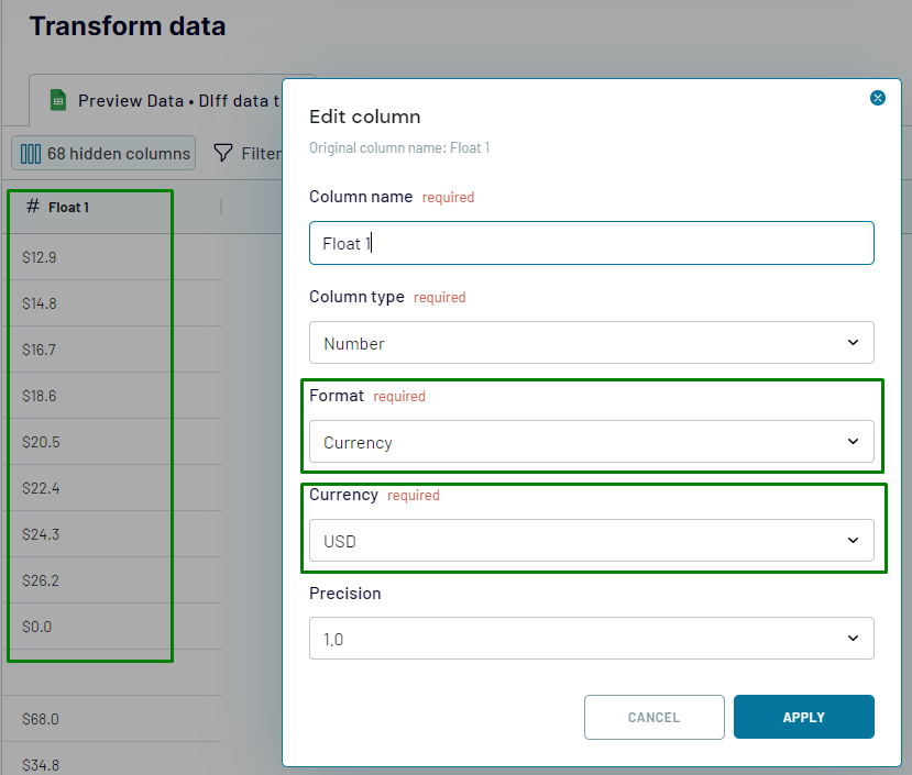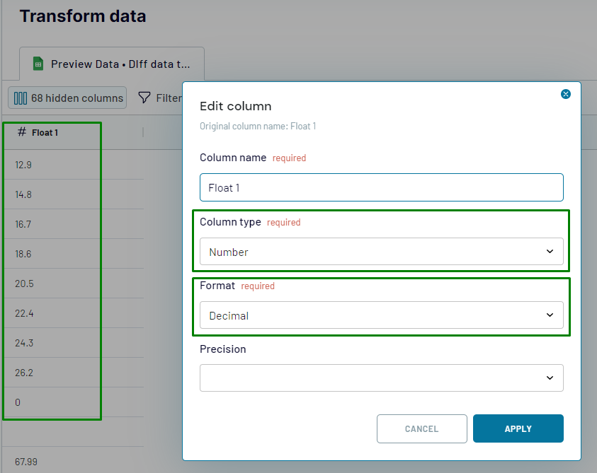Number data type stands for numeric values. Coupler.io supports different data types and formats along with precision described below.