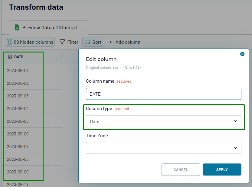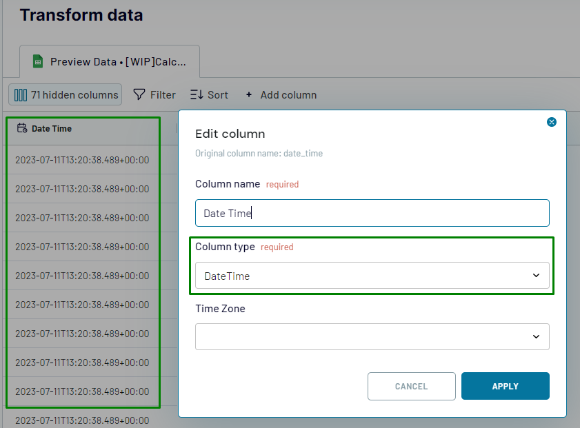 Make sure that you have in the source needed columns in 'Date' or 'DateTime' ISO format (e.g. YYYY-MM-DD, YYYY-MM-DD HH:mm).