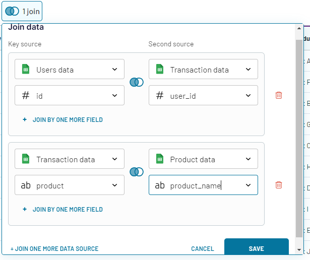 Along with Join by 2 sources, it is possible to join these sources by multiple fields