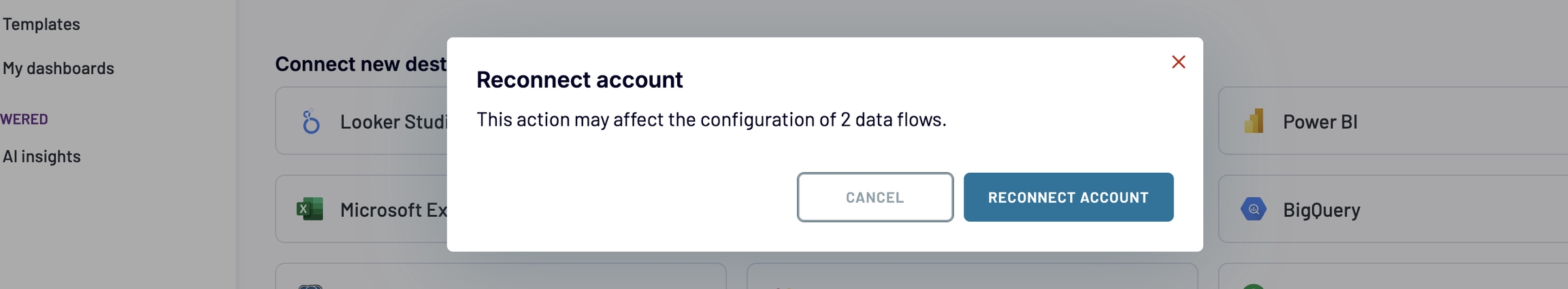 Confirm by selecting the "Reconnect account" button.