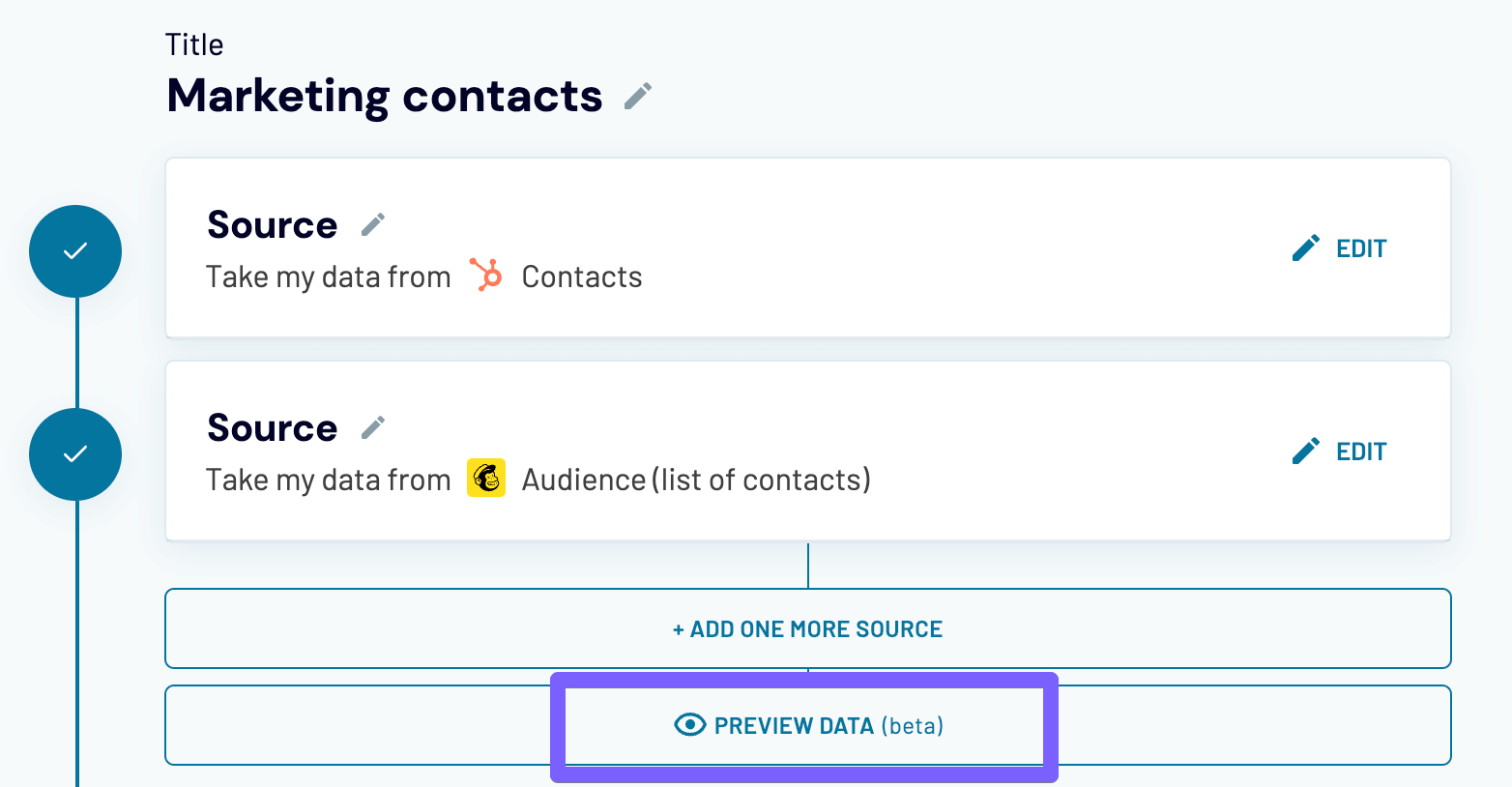 To take advantage of this, add at least one source and hit the Preview data button below (the feature is currently in beta).