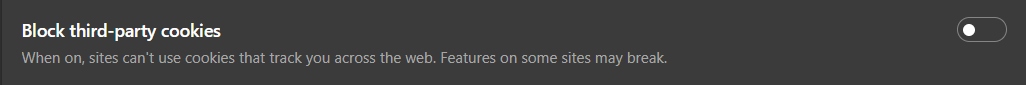 - Disable the " Block third-party cookies" option.