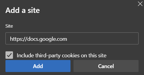 -- Check "Including third-party cookies on this site".